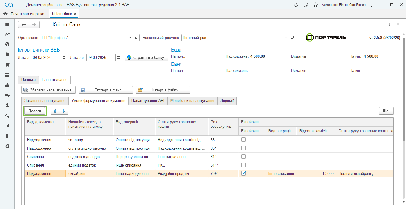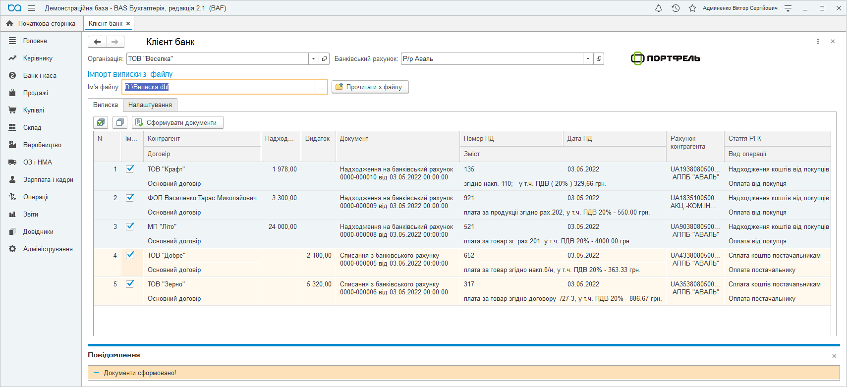 176Модуль «Клиент-банк» предназначен для загрузки банковской выписки из системы «Клиент-банк» в BAS. Специалисты компании «Портфель» устанавливают и настраивают модуль после приобретения, но может потребоваться подключить модуль самостоятельно, поэтому рассмотрим подробно как это сделать на примере «BAS Бухгалтерія».