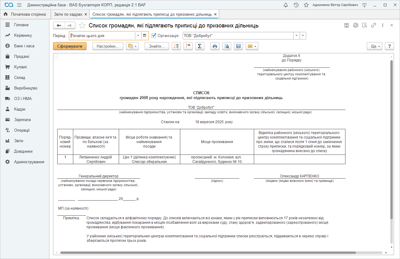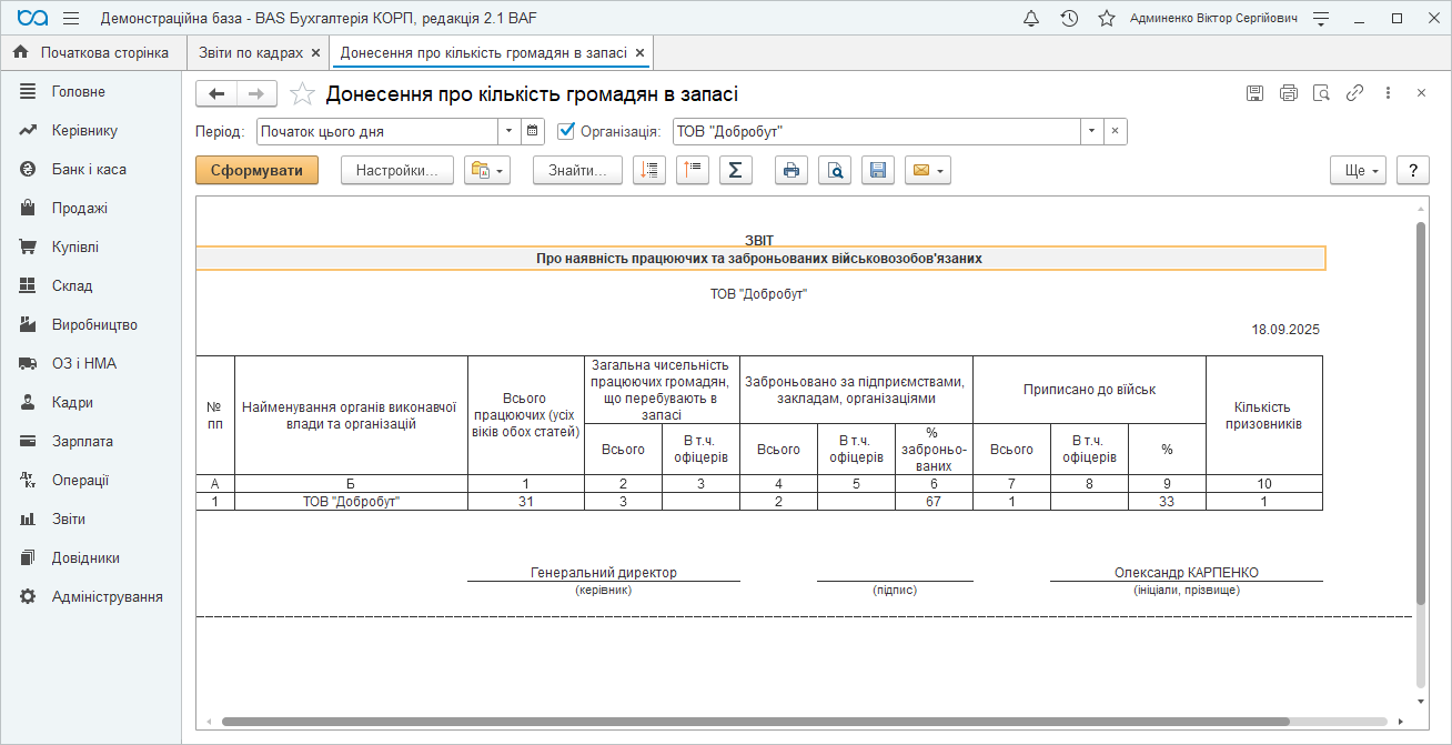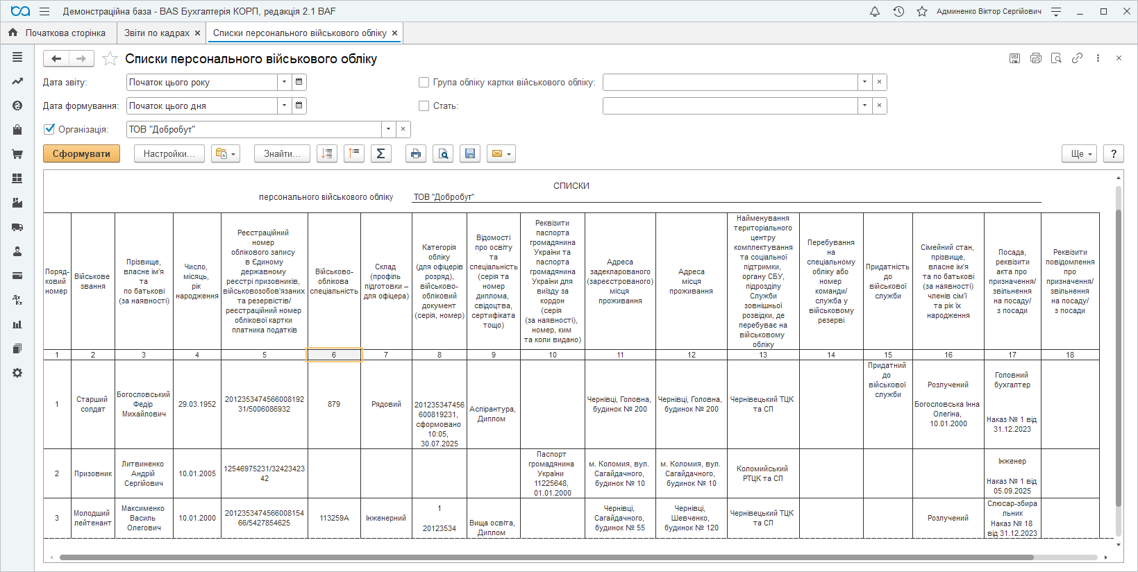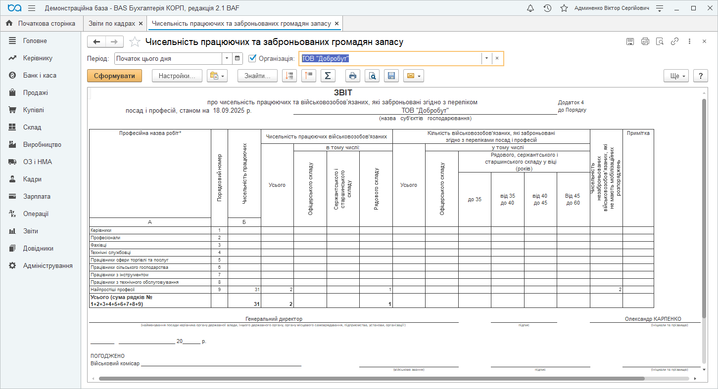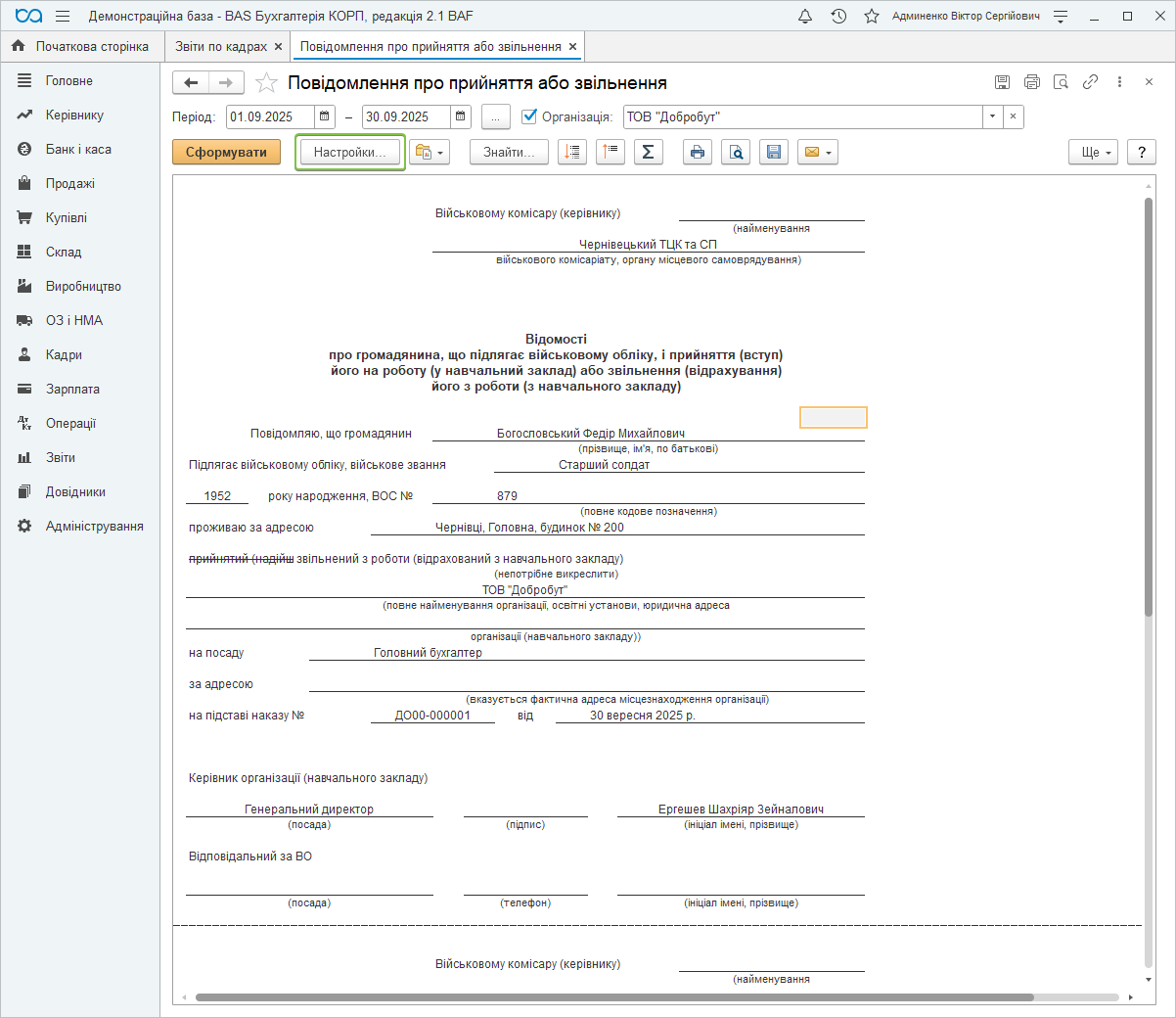 Ведение военного учета и бронирования в «BAS Бухгалтерія КОРП»