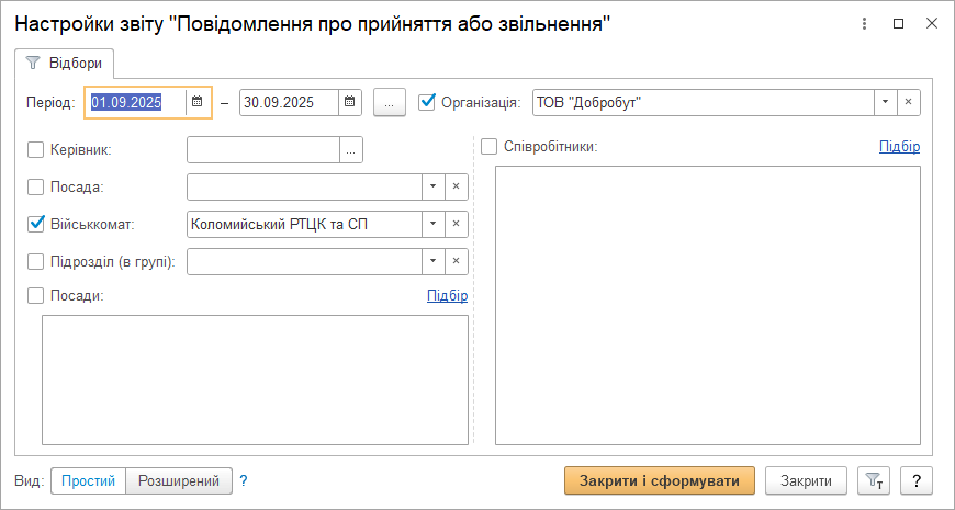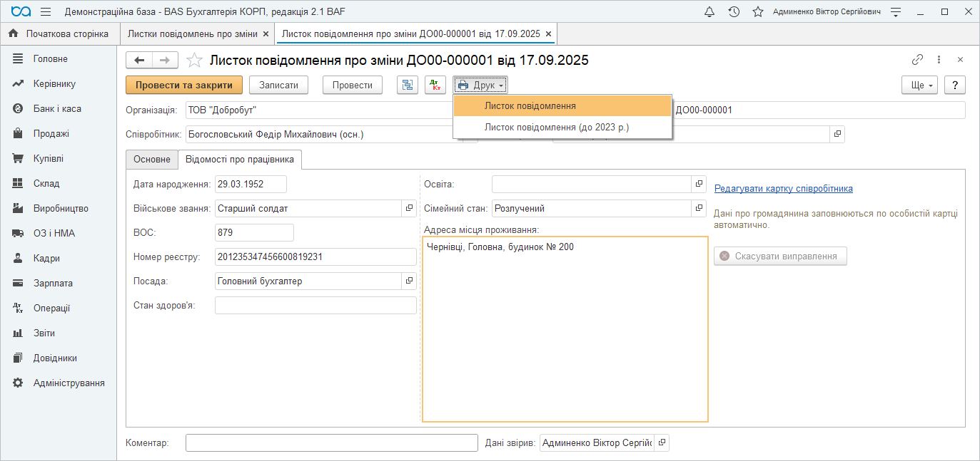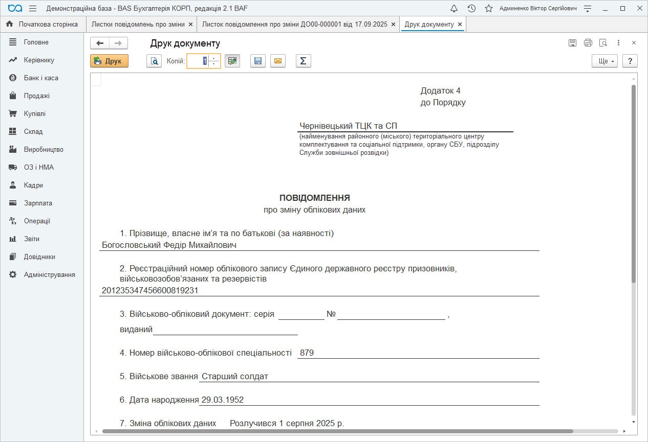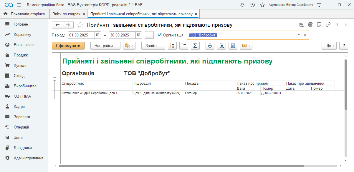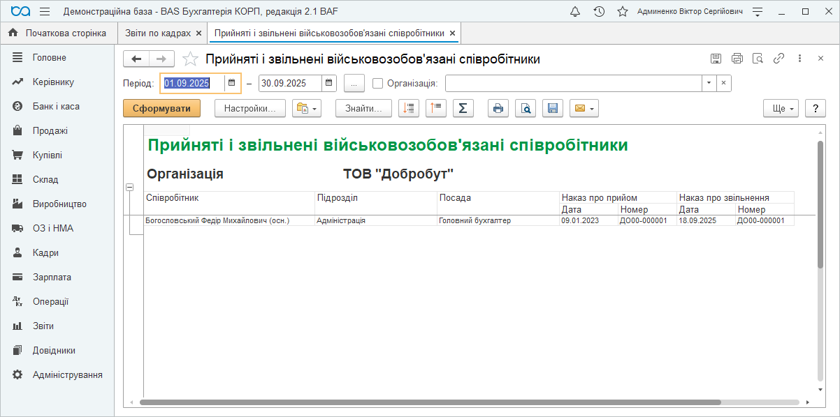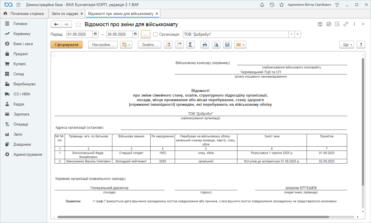Ведение военного учета и бронирования в «BAS Бухгалтерія КОРП»
