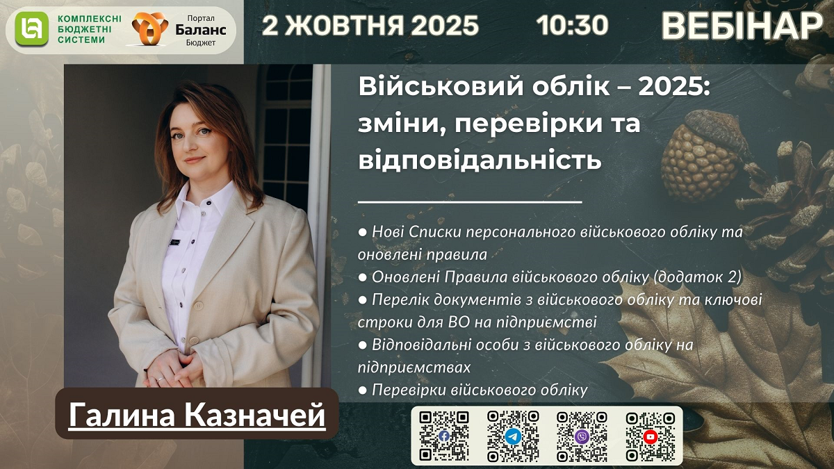 12:00-12:20 Автоматизація військового обліку та інші кадрові питання в програмних продуктах “Облік бюджетної установи” та “Бухгалтерія комунального підприємства”